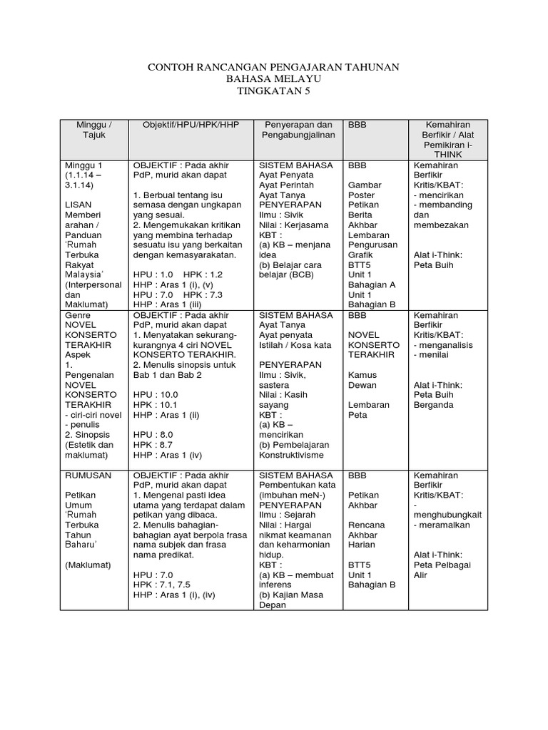 Contoh Rancangan Pengajaran Tahunan Bm 2014 Pdf